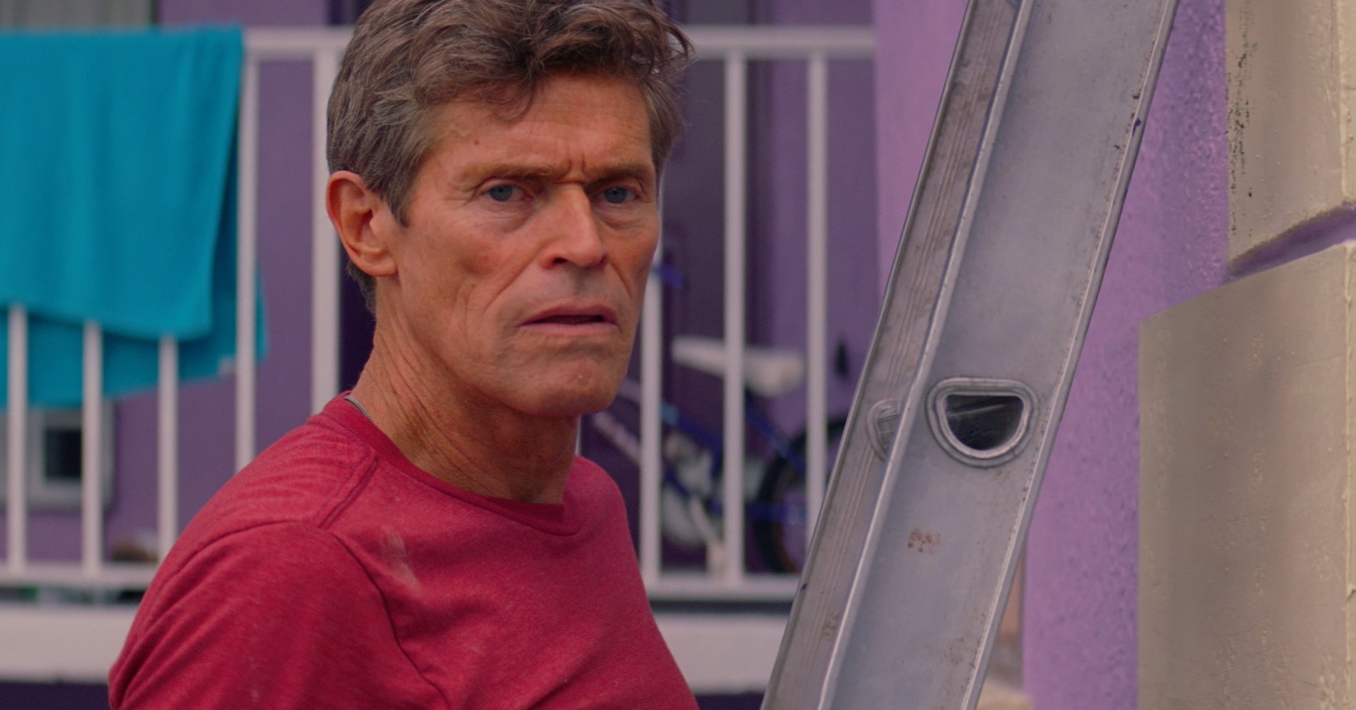 Другая потенциальная проблема фильма с непрофессиональными актерами — в том, что на фоне Дефо они, конечно, должны все лажать. И тут Бэйкер делает гениальный ход: и Бруклинн Принс, и Бриа Винайте у него играют таких «простых» девчонок, и все кажущиеся фальшивыми ноты — просто часть образа героинь. И никаких вопросов не остается. Другой вопрос, что Уилллем Дефо и Калеб Лэндри Джонс в сцене на две минуты — они просто переносят холодильник, тот еще этюд, — выдают такой мастер-класс актерской игры, что все равно видно, кто тут профи, а кто просто милый человек, попавший в типаж.